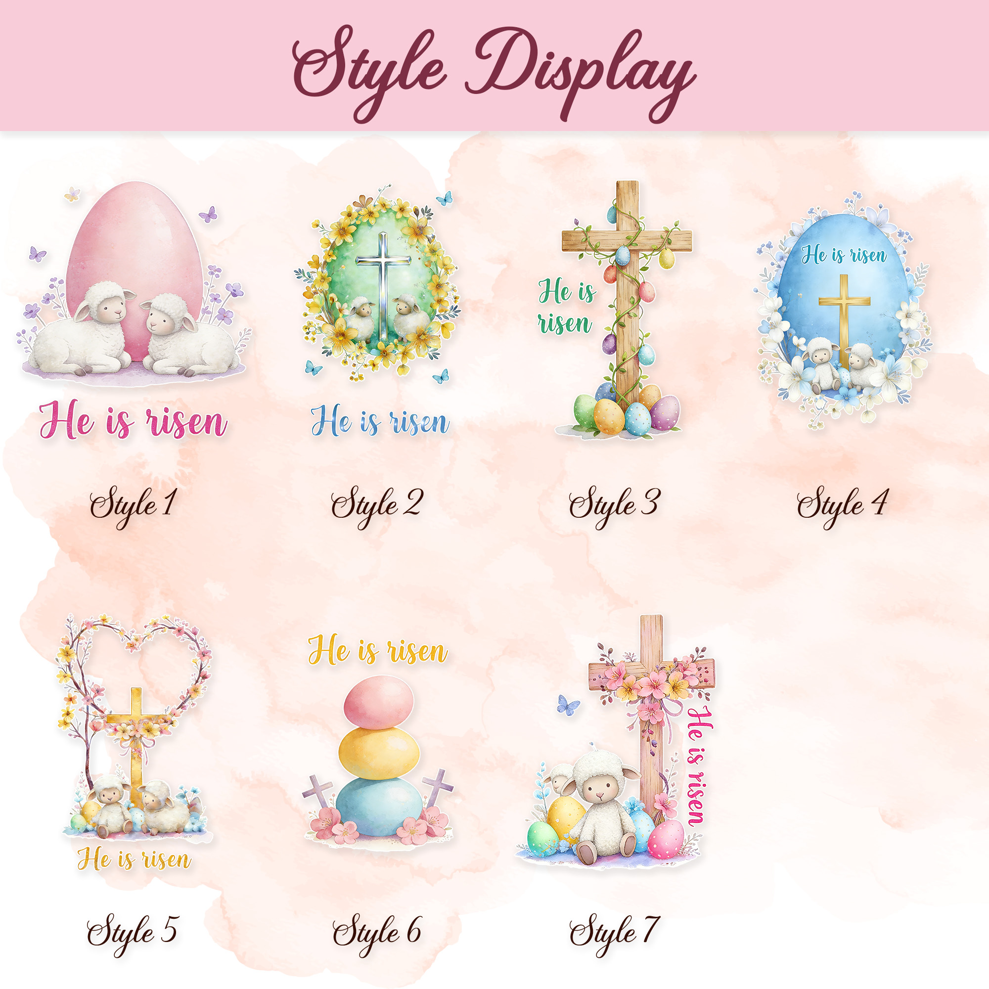 Faith-Inspired Easter Design - The tote bag features a sweet Easter scene with a cross, eggs, and gentle sheep, paired with the message “He Is Risen.” The cute and meaningful design reflects the joy and hope of Easter Day, creating a warm faith-based style that children love and families appreciate.